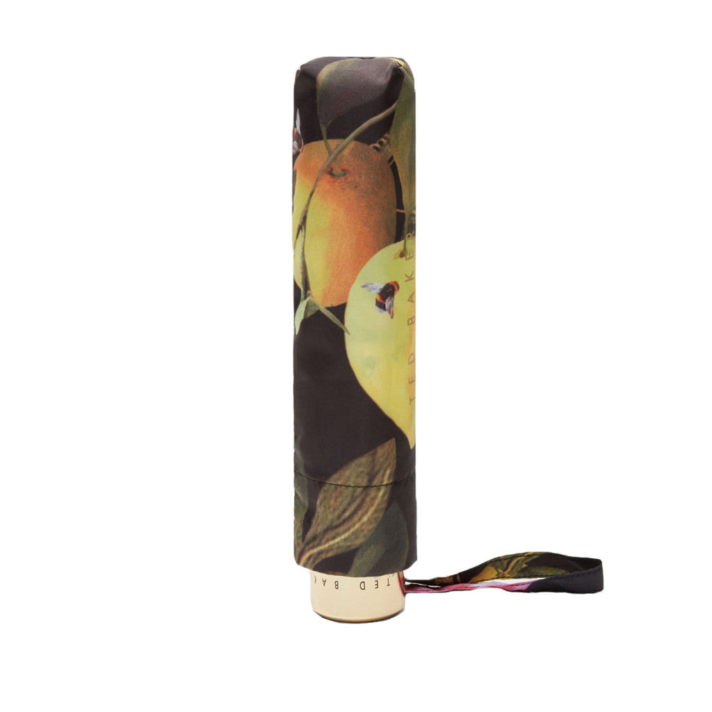 Ted�s ISSELA umbrella is so pretty it will have you wishing for rain. Entwined with his glorious Citrus Vine print and gilded with gold trims, this compact design neatly folds away in between showers.